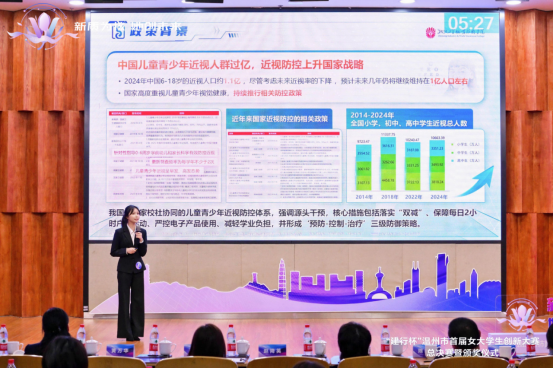《视界方舟——青少年近视管理与视觉训练系统》项目负责人余悦鸣现场汇报
